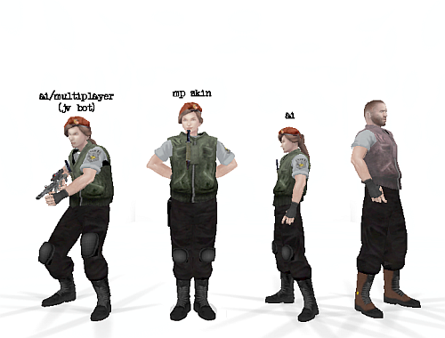 'created' a new model for the jill valentine skin by simply editing the misc_german_worker.tik to scale the model smaller . works well if the model is used as ai however when i create a mp .tik skin and code it to use the new jill valentine .skd, the skin shows up as regular size . same if i create a new ai_multiplayer.tik using the ai/jill valentine.tik . but at least it's a start .