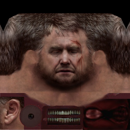 Example of a face texture from RTCW converted to MOHAA. When i started to converting the faces it was a bit hard because RTCW's head models lack eyelashes, so its a single surface for the entire face and a second surface reserved for the closed eyes texture, and I had to recreate that 2d effect on MOHAA's more detailed head models where the entire eye is required in the face texture sheet. If i used the original eye texture on wolfenstein faces they would look like they were glowing and looked really awfull. The only way to overcome that was to recreate the original eye coulors form the wolfenstein fales which in many cases were realy dark due to the faces' shadows, but in the end I managed to overcome this little problem and the skins in game look amazing, some of them you can't even tell the difference.